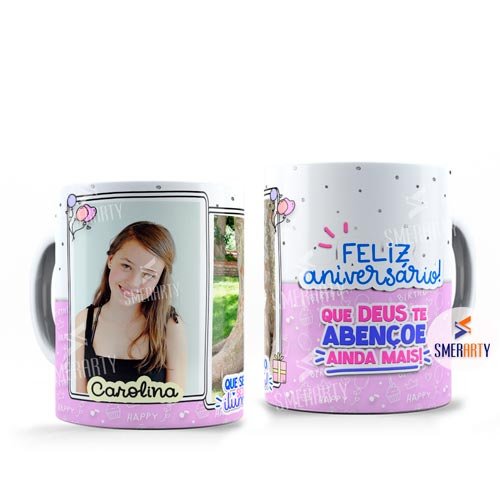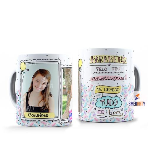 - A caneca possui uma parte sem estampa próximo a alça da caneca, pois não é possível estampar nessa área.